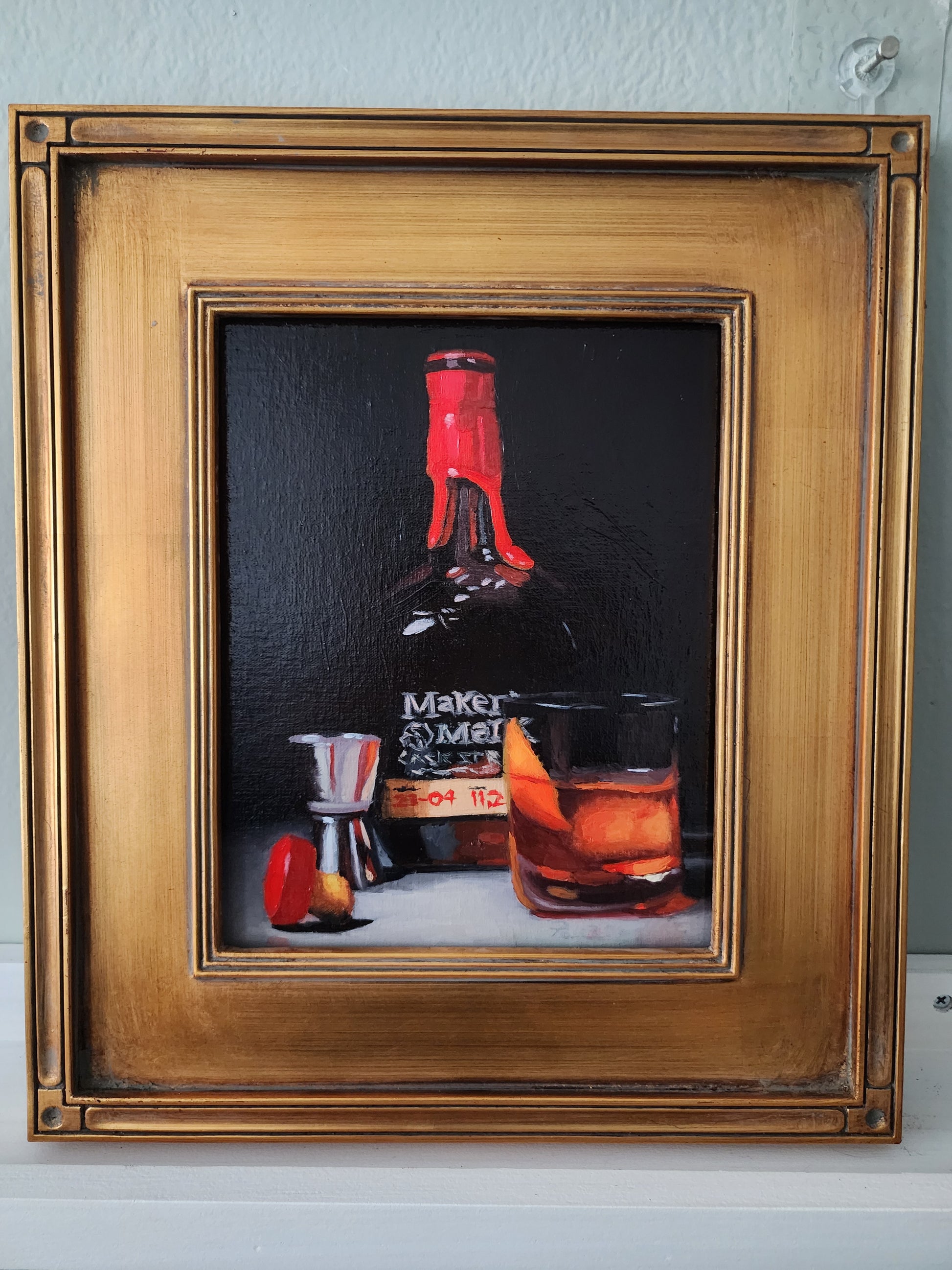 Celebrate timeless elegance with this 8x10 oil painting capturing the essence of an Old-Fashioned cocktail. Featuring rich hues and classic still life composition, it evokes the warm glow of golden hour and the refined spirit of happy hour. Perfect for whiskey enthusiasts and lovers of Makers Mark bourbon, this artwork adds a sophisticated touch to any space.